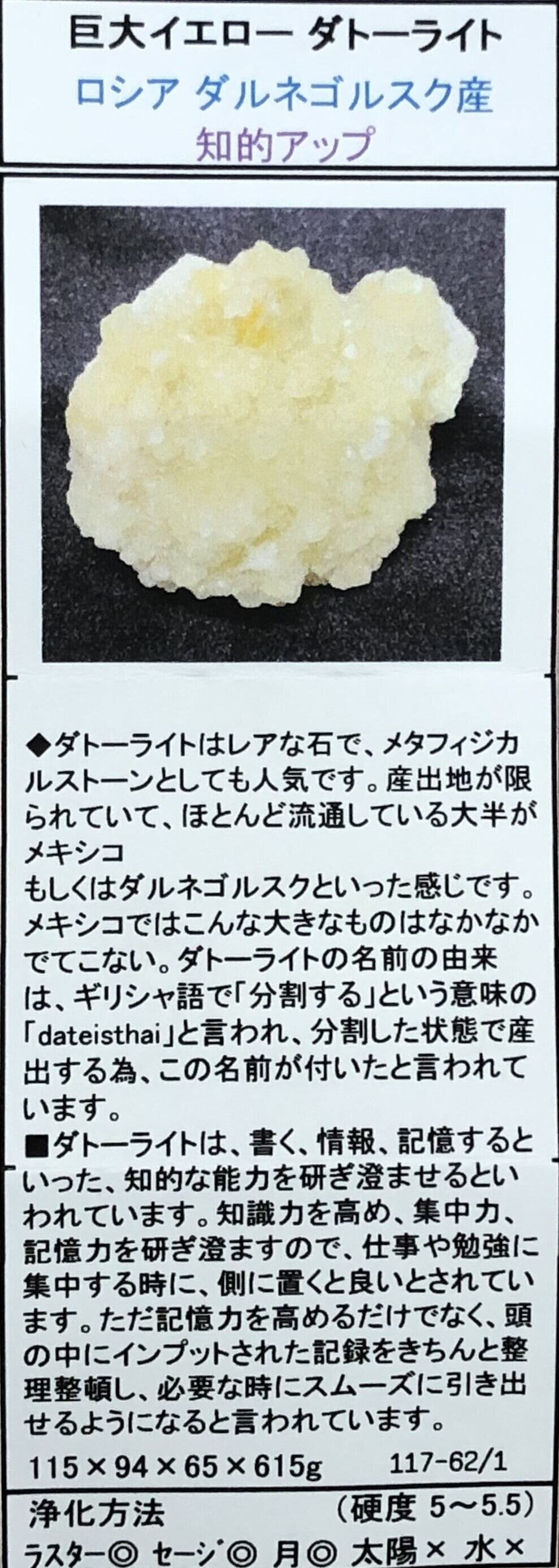 ■ダトーライトは、書く、情報、記憶するといった、知的な能力を研ぎ澄ませるといわれています。